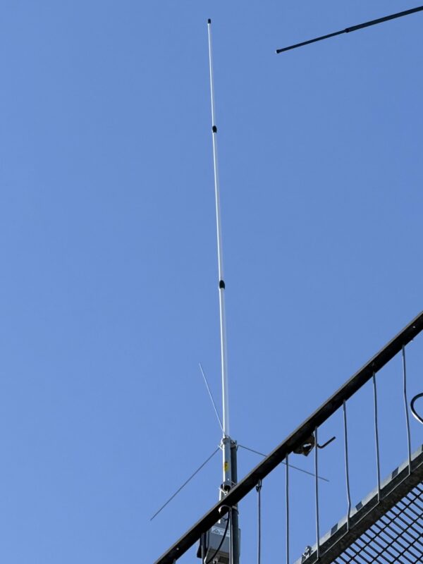 Nästa steg var att installera en ny kabel och en ny antenn upp till översta sektionen av masten. Magnus SM6VFJ lyckades få fatt på en ny fin lågförlustkabel på 30m och från Roland SM6IPL fick vi fatt på en bättre begagnad 2×5/8 antenn. Denna installerades av Fredrik CJZ och Magnus VFJ den 14 mars tillsammans med den nya lågförlustkabeln. Tyvärr var den lite för högt trimmad (148MHz) och vi valde att låta den sitta kvar, men börja leta reda på en ny.